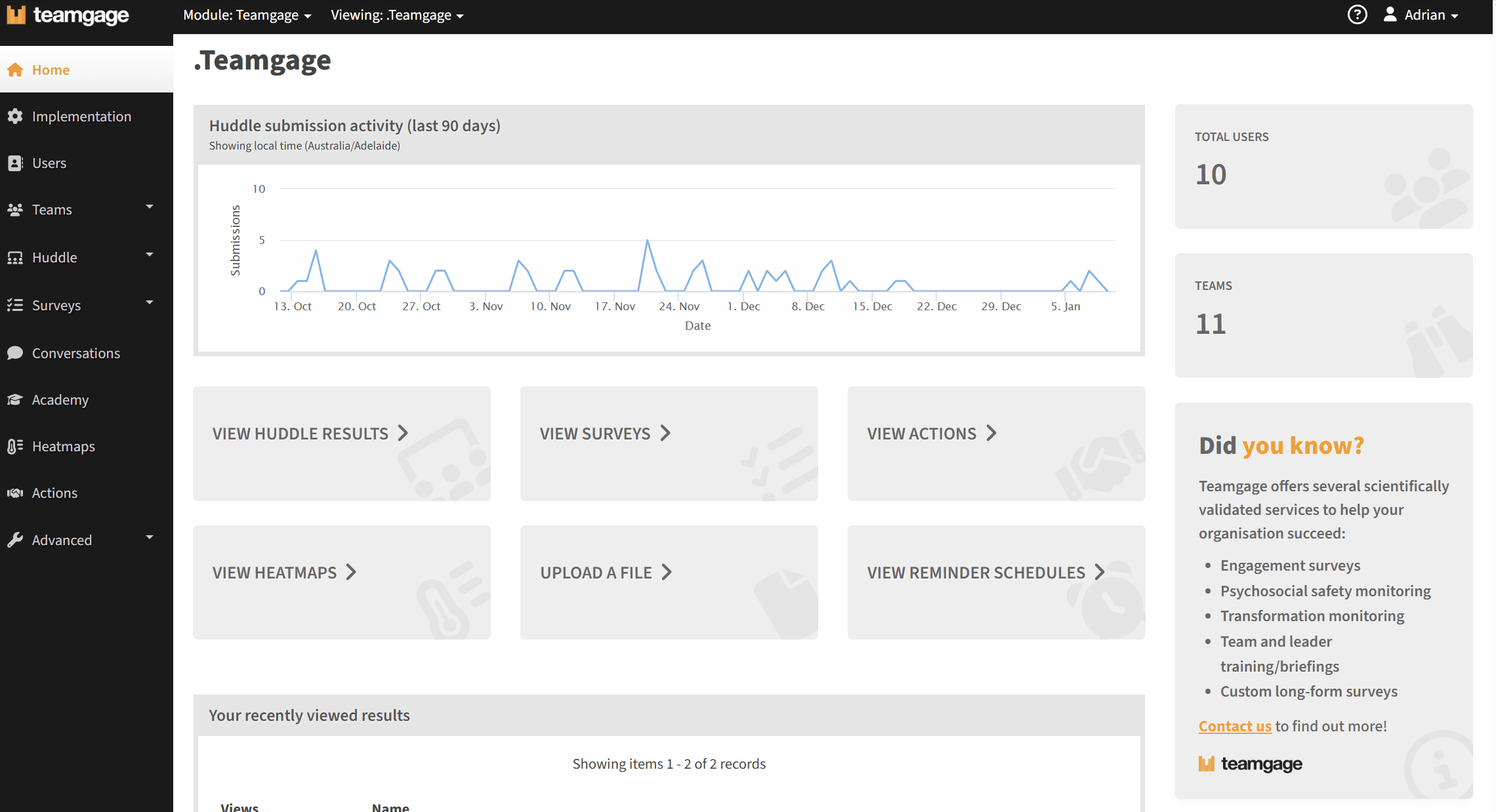 About the Metric library The Teamgage metric library provides a curated set of validated Huddle metrics. These have been grounded in best-practice survey science and proven research on team effectiveness, psychosocial safety and risk management, and ...