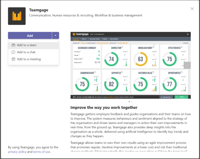 This guide provides instructions for installing the Teamgage app in Microsoft Teams for your organisation.