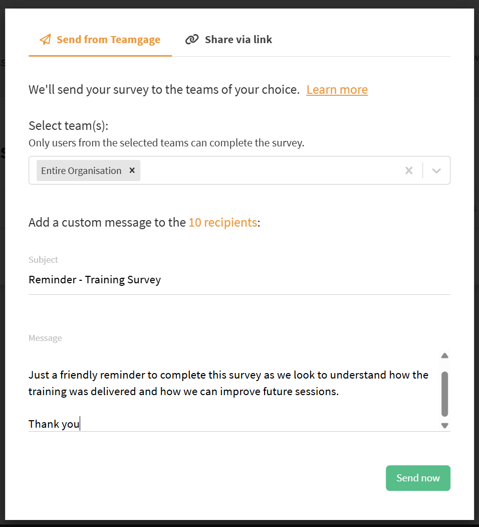 Sending a Teamgage Survey