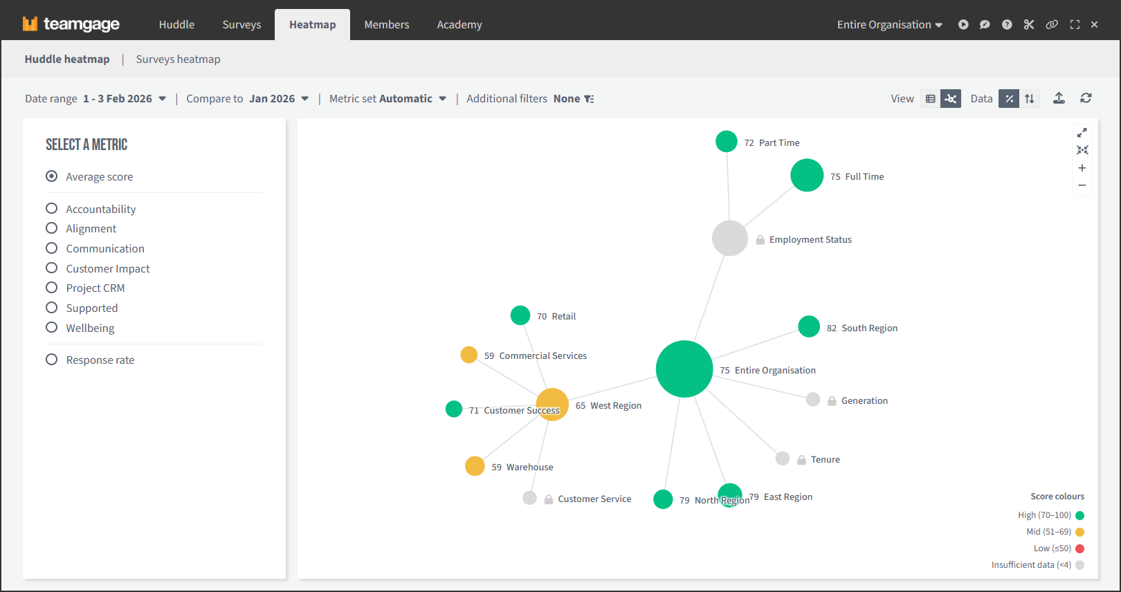 Heatmaps are designed to support data-informed leadership conversations, whether you're reviewing results at an organisational level or drilling into individual teams.