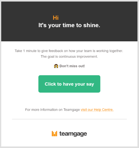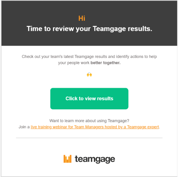 Teamgage sends notifications directly to your email so you never miss a chance to submit feedback or review result's.